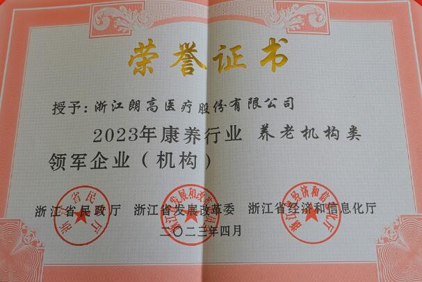 喜报丨浙江朗高医疗股份有限公司荣获浙江省“2023年康养行业领军企业”称号
