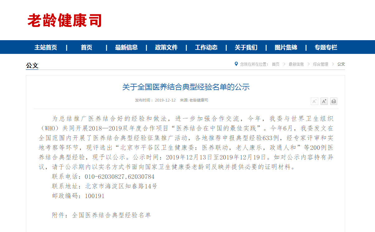 喜讯 为总结推广医养结合好的经验和做法,进一步加强合作交流,今年,卫健委与世界卫生组织(…