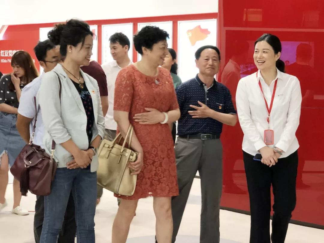 在红豆集团国际公司养老事业部张雪茹部长的陪同下,朗高参观团站来到红豆财富广场展馆,从红豆七十年发展、集团党建发展、柬埔寨西哈努克经济特区一带一路建设等方面,详细了解红豆集团创新党建工作,并深入探讨党建深度融企业管理。学习红豆集团把党的政策、组织和政治优势转化为企业的机遇优势、人才优势、和谐优势,创造了“一核心三优势”、“一融合双培养三引领”及“三位一体”中国特色现代企业制度等党建工作经验和工作方法。