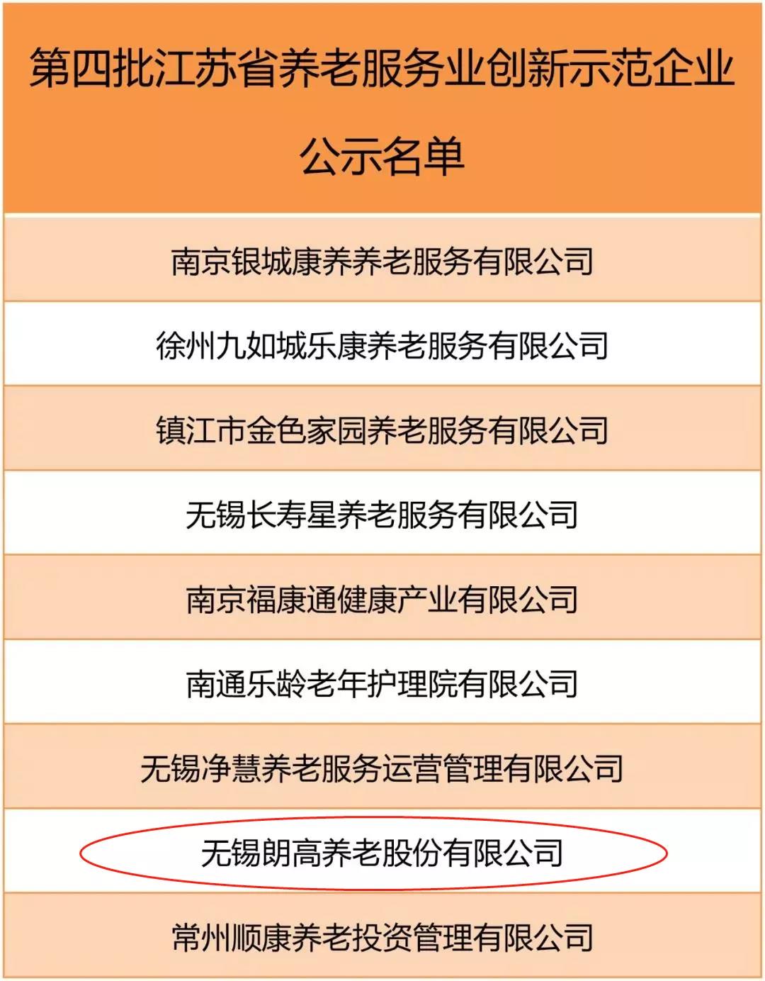 为贯彻落实《江苏省养老服务条例》和《江苏省“十三五”养老服务业发展规划》提出的目标要求,加快推进全省养老产业发展,切实发挥示范性养老产业基地、创新示范企业的引领作用,根据《关于开展第四批省级养老服务业综合发展示范基地、省级养老服务创新示范企业申报推荐工作的通知》(苏发改服务发﹝2019﹞1112号),近日,江苏省发改委组织开展了第四批省级养老服务业综合发展示范基地、养老服务业创新示范企业认定工作。经组织申报、形式审核、专家评审、信用核查等程序,无锡朗高养老集团股份有限公司荣获第四批江苏省养老服务业创新示范企业称号。