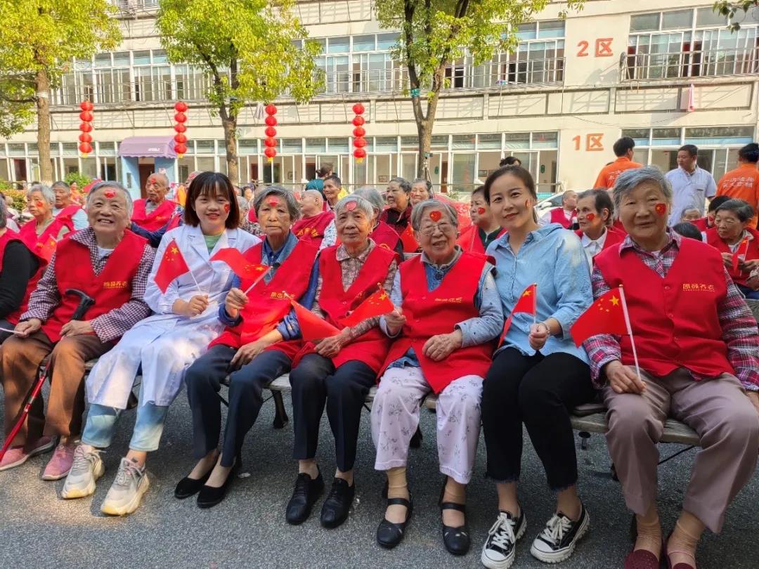 “起来! 不愿做奴隶的人们! 把我们的血肉,筑成我们新的长城!”无锡朗高护理院内一片欢腾,医护人员和星光缘艺术团带领着老人们在院内开展了一场“迎中秋,庆国庆”的歌舞汇演,大家欢聚一堂不分彼此,红旗招展歌声嘹亮,吴阿婆挽着护士的手说:“我们在朗高过得舒心玩的开心,也祝愿我们的祖国更加繁荣昌盛,越来越好!”