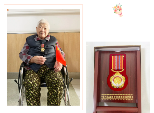 为纪念中国人民志愿军抗美援朝出国作战70周年,近期,居住在无锡梅园护理院的抗美援朝英雄林均梅老人获颁“中国人民志愿军抗美援朝出国作战70周年”纪念章。收到这份沉甸甸的奖章时,老人激动不已,表示要把纪念章永远挂在心里。曾参加过解放战争、抗美援朝战争的林奶奶,时至,她仍能清晰回忆起当时作战的场景,回忆往昔烽火峥嵘岁月,感叹如今的美好幸福生活,让林奶奶从心底里感受到党和政府的关心关爱,感受到朗高大家庭的温暖。林奶奶希望后人要在新时代继续弘扬抗美援朝精神,努力建设美丽新中国。