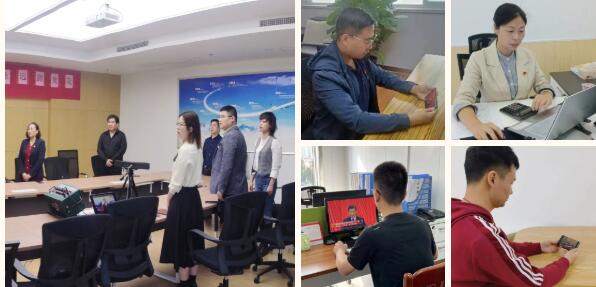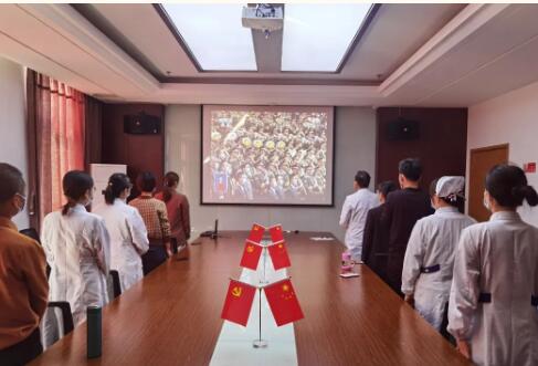 朗高养老及各机构党支部成员、职工、长者党员、长者代表认真观看大会现场直播