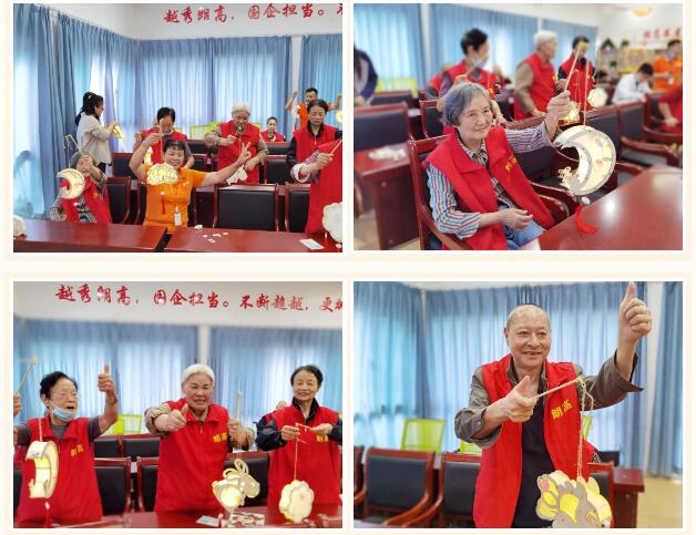 在这团圆的节日里,为丰富朗高人的文化生活,湖州朗高护理院、黄岩朗高康复护理院开展“花灯邀明月,中秋情意浓”手工趣味活动。在制作过程中,长者们按照制作步骤剪剪贴贴,大家都非常积极的进行交流、探索、制作,你一言、我一语,互帮互助。不一会儿,一个个漂亮的灯笼相继出炉,大家也心满意足地跟自己的作品拍照留念。小小花灯为中秋佳节增添了浓浓的喜庆氛围。