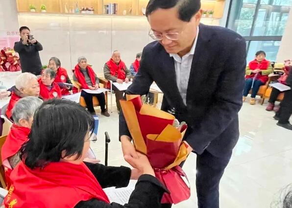 悠悠爱老心,浓浓敬老情。蠡园朗高养老院张灯结彩、年味渐浓,梅兰合唱团的长者正在排练歌曲,大厅里歌声嘹亮、暖意融融。宋晓一行向老人们表达了节日问候,将鲜花一一送到他们的手中,仔细询问长者的日常饮食、住宿、文体活动等生活情况,并祝愿他们健康长寿、晚年幸福。一句句温馨的话语,一声声贴心的问候,让老人们倍感温暖。