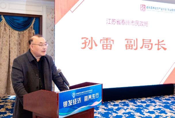 江苏省泰州市民政局副局长孙雷致辞中表示随着社会的不断进步和人口老龄化的日益加剧,养老服务已经成为关乎国计民生、社会和谐的重要议题。泰州是江苏省老龄化程度较高和老年人口较多的地区,大健康产业起步早、基础好,养老服务正是契合泰州“大健康”产业和“幸福城市”的特色来发展。因此,提升养老服务质量,老年营养服务不可或缺,这关系到广大老年人的幸福晚年和生活质量。希望通过此次培训班对泰州市开展的“美味颐养”专项行动提供必要的技术支持,对加快推进养老服务高质量发展、推动“祥泰颐养”品牌建设,做出积极贡献。