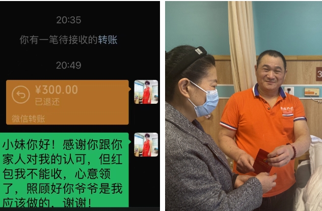 纵观养老机构家属赠送红包的行为,本质上是一种感谢和关爱的表达方式,也想通过红包增强人与人之间的情感联系。但作为养老从业者,我们不仅会用言语劝导家属赠送红包的行为,也在不断约束自我、提高服务、用事实说话。从本职本心出发,给每位入住长者最优质的关怀照料,用实际行动诠释着护理仁德。